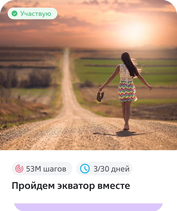 Цель челленджа — суммарное количество шагов, которое должны набрать все участники вместе. При достижении цели определяется рейтинг, который отражает результат каждого участника.